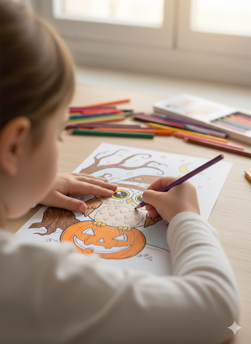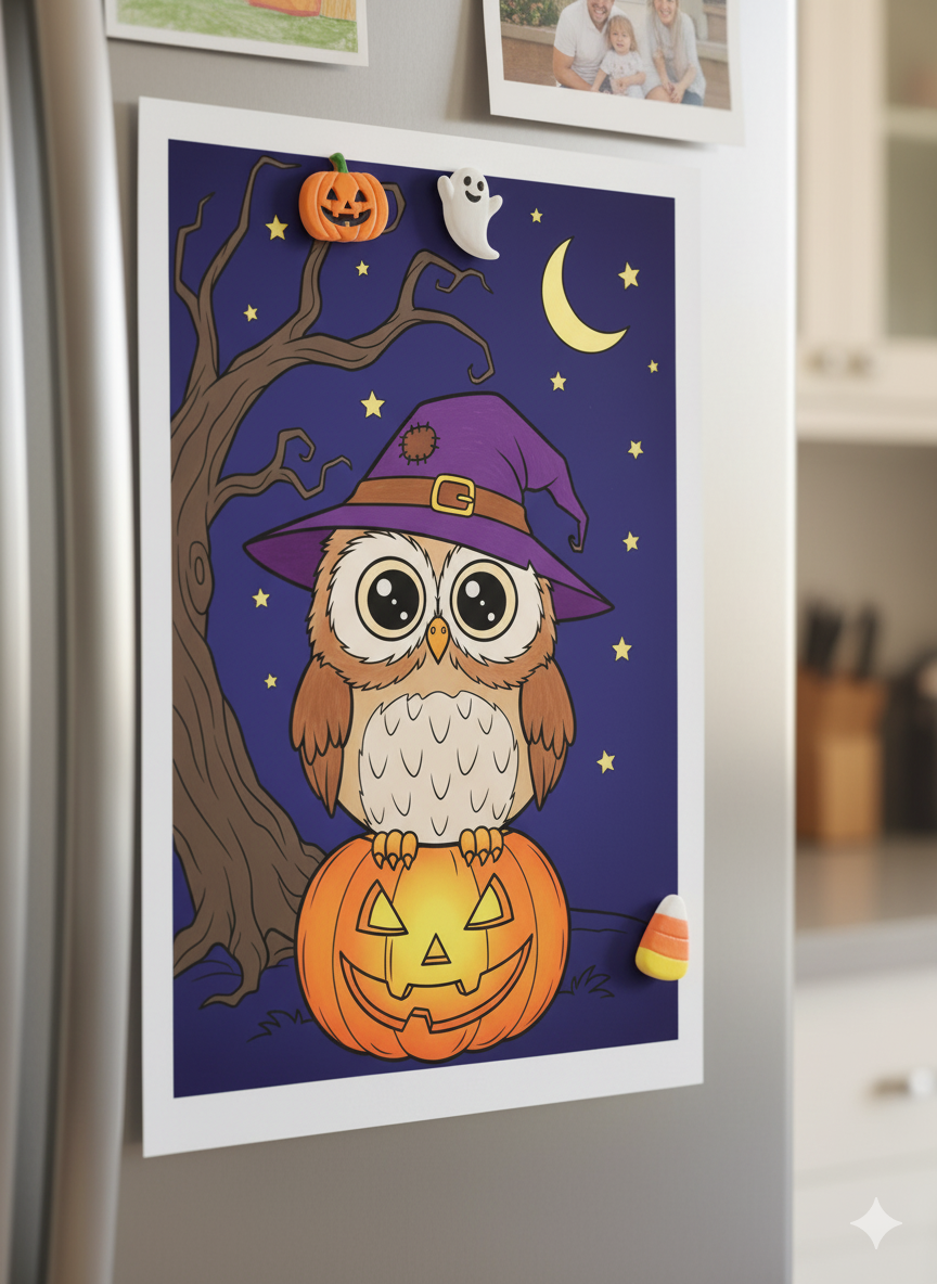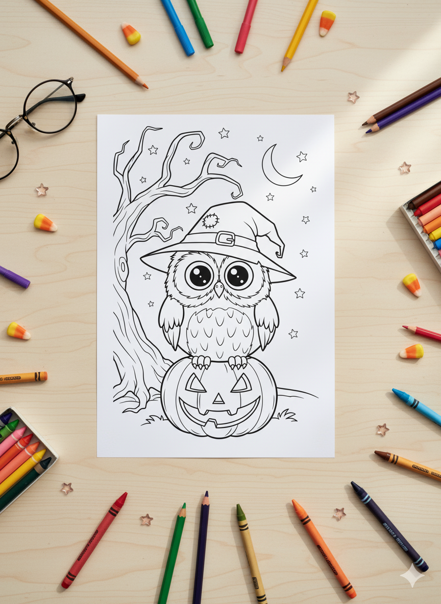 Cute Owl Witch Halloween Coloring Page for Kids | Printable Art PDF